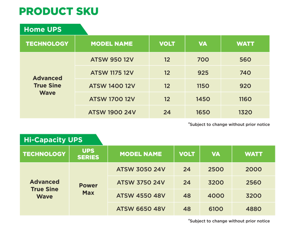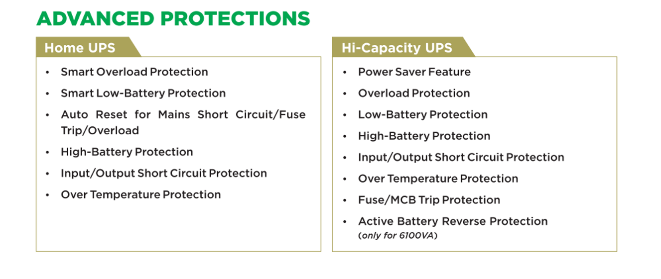 Home UPS & Hi-Capacity UPS Models: